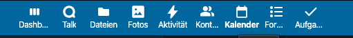Man loggt sich als vorname.nachname ein auf nextcloud.bib-info.de. Hier klickt man oben auf das Kalendersymbol