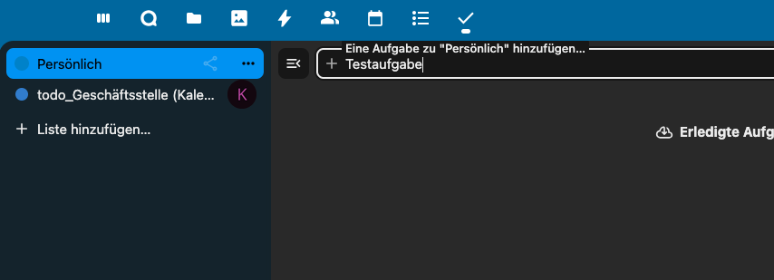 Hier muss man erst links die Aufgabenliste auswählen und kann dann Aufgaben zufügen: