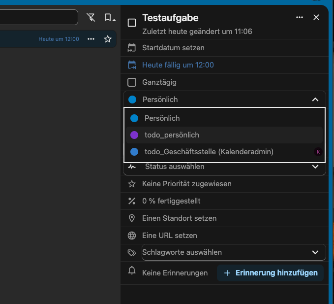 Im Kalender kann man nun seine Aufgaben ein- oder ausblenden mit dem Haken: