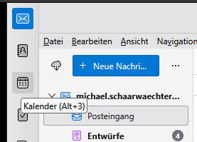 Entweder über Alt-3 oder über Klick auf das Symbl gelangt man in Thunderbird zu den Kalendern.