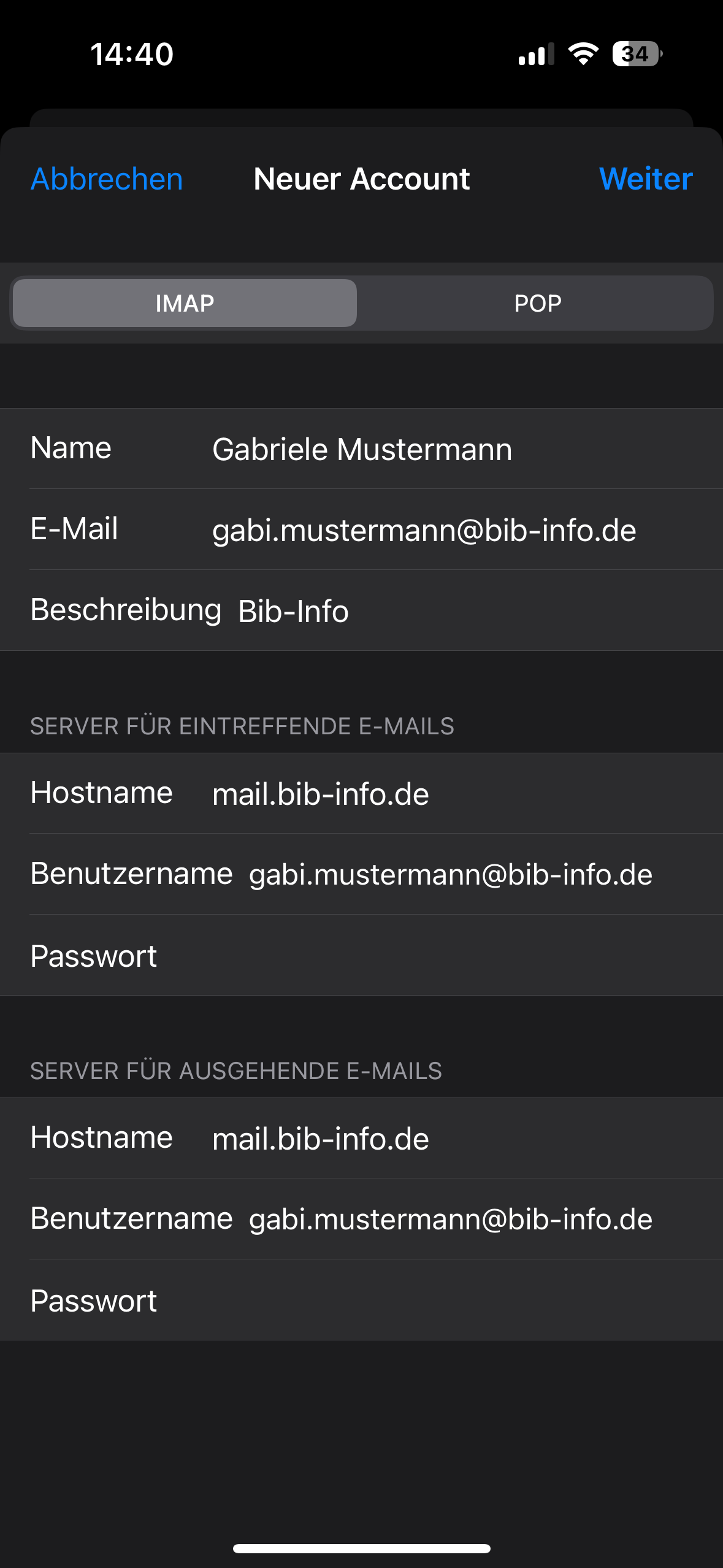 | Server | mail.bib-info.de oder mail.8ib.de oder mail.bibliothekundgesellschaft.de (identisch) |
