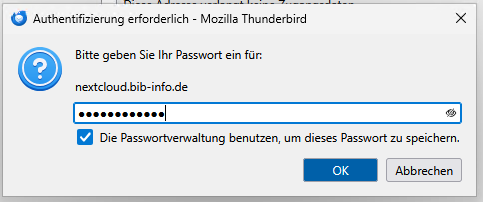 Thunderbird kann zwar eigene Kalender pflegen, die liegen aber auf dem Rechner, auf dem Thunderbird läuft. Ergo: Kein Backup, keine Möglichkeit mit anderen zu teilen. Der BIB hat bereits eine Nextcloud, in Nextcloud gibt es sowohl Kalender als auch Aufgabenlisten. Man kann beliebig viele eigene Kalender erstellen und/oder Kalender und Aufgabenlisten mit anderen teilen.